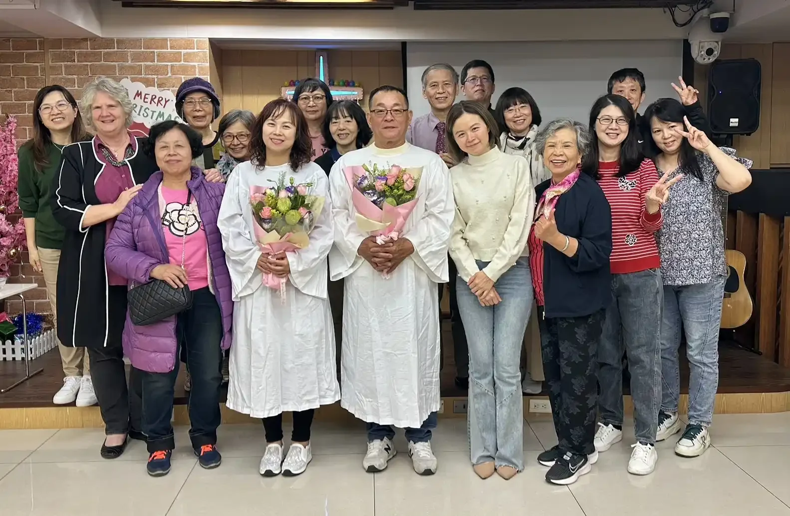 事由:標竿小組陳慧珊姐妹常年活出上帝的喜樂與恩典見證,至終感動男朋友陳朝明與姐姐陳慧芬,並願意陪讀參加信仰班課程,確信了解受洗意義後決定受洗。因為工作關係無法在主日受洗,特於上帝所定12/22特別日子受洗了!感謝主!一切榮耀歸於主!
